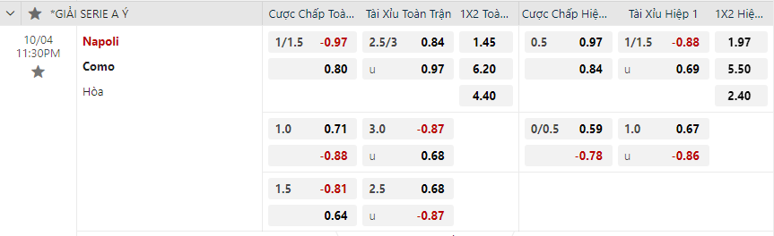Soi kèo hiệp 1 Napoli vs Como